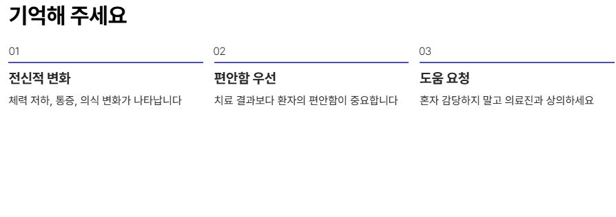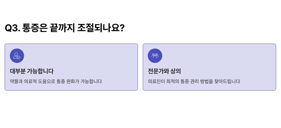 이럴 때는 완화의료(호.스피스)를 통해 통증·불안·호흡 곤란을 체계적으로 관리하는 것이 도움이 될 수 있습니다.