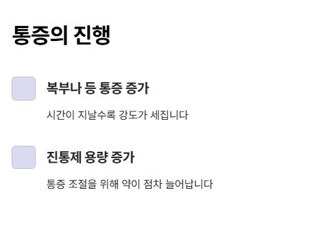 복부나 등 통증이 강해지고, 진통제 용량이 점차 늘어나는 경우가 많습니다.