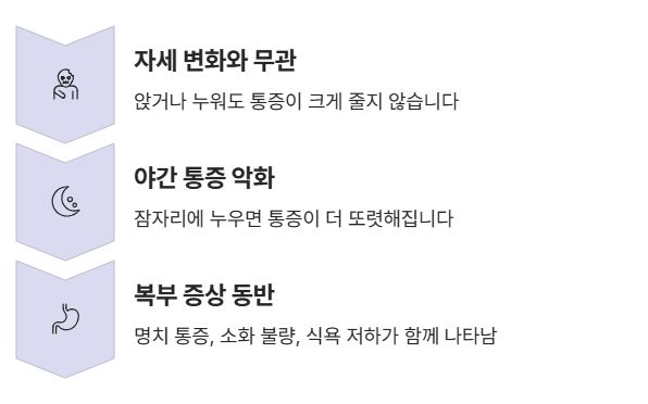 잠자리에 누우면 통증이 더 또렷해지는 경우가 있습니다.