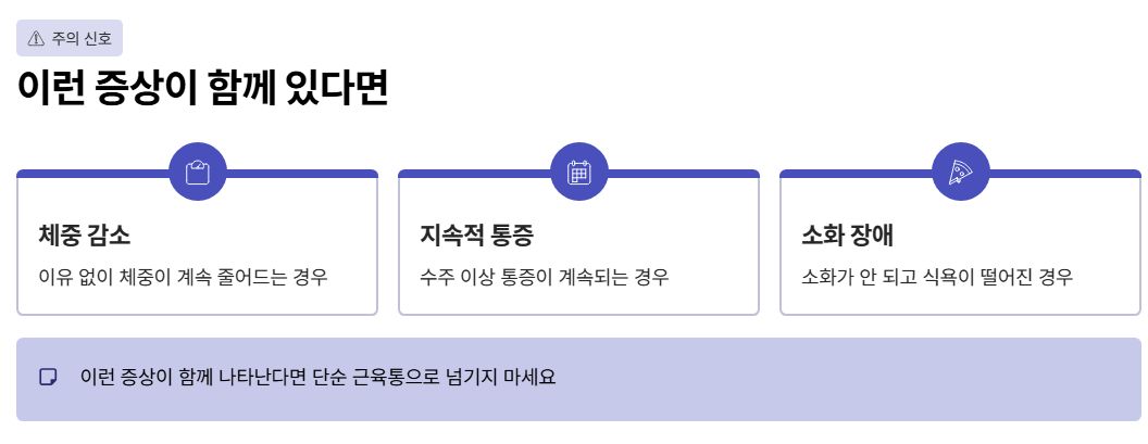 명치 통증, 소화 불량, 식욕 저하가 동반되기도 합니다.