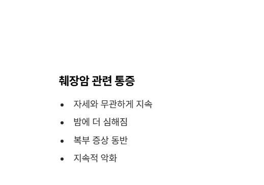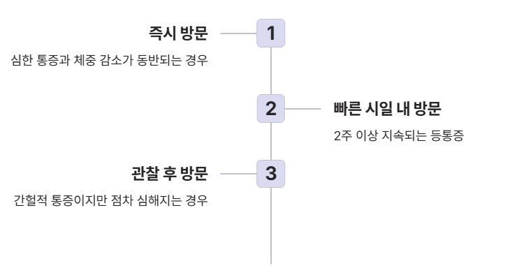 췌장암과 관련된 등통증은 다음 특징을 보이는 경우가 있습니다.