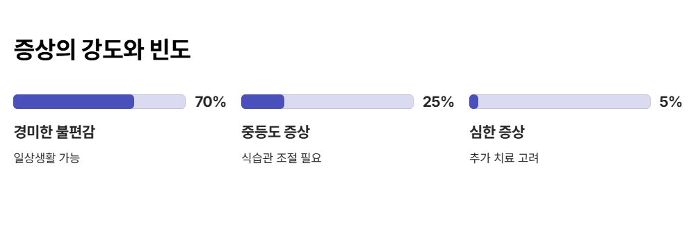 대부분의 경우 수개월에 걸쳐 장이 적응하면서 증상이 점점 줄어듭니다.