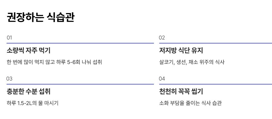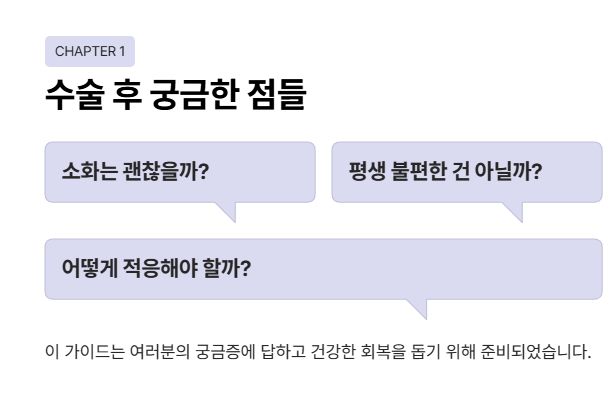 특히 수술 초기에는 배가 아프거나 소화가 잘 안 되는 느낌이 잦습니다.